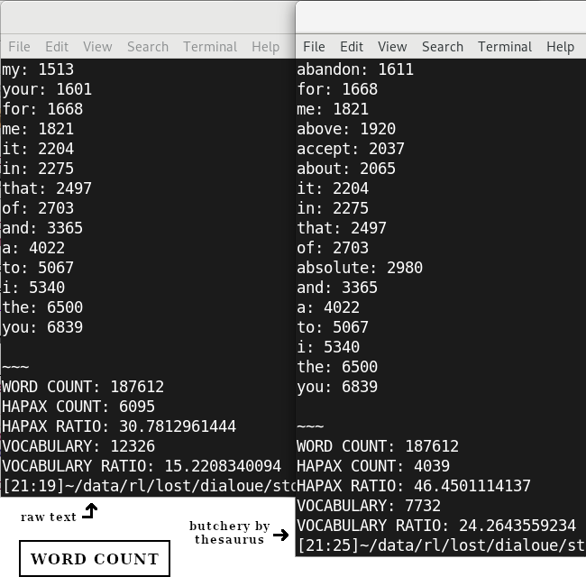| Comparing word counts with/without thesaurus |